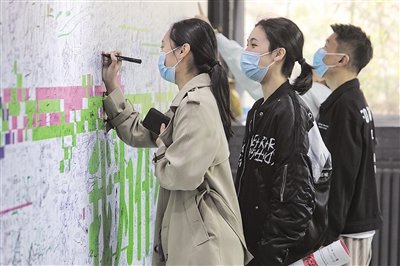 4月2日,人们在读者留言墙上写下自己的心情和体验。(新京报记者 王嘉宁 摄)