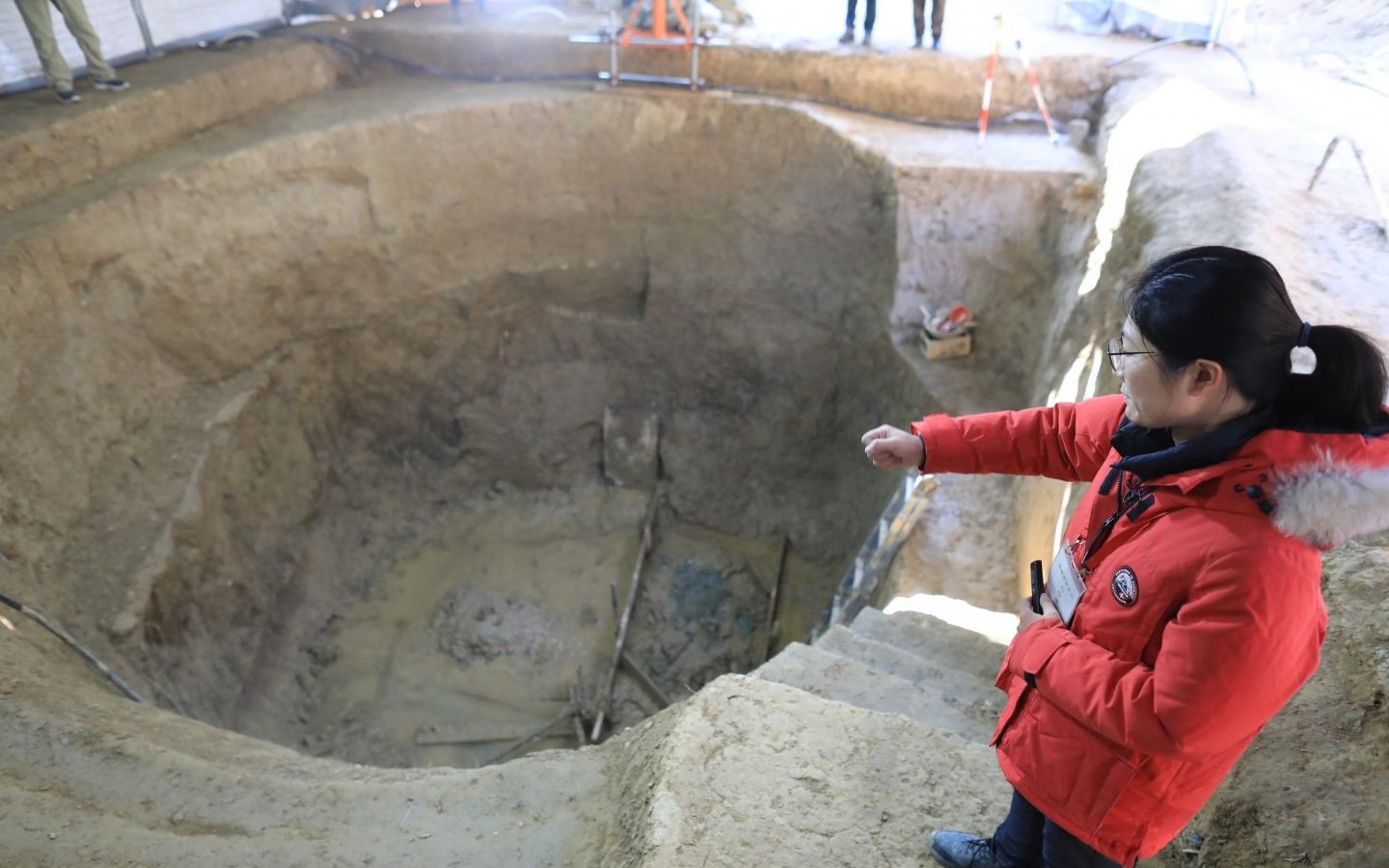 2021年12月,王晶介绍西周早期墓葬M1901(原IIM253)发掘情况。资料图片/新京报记者 浦峰 摄
