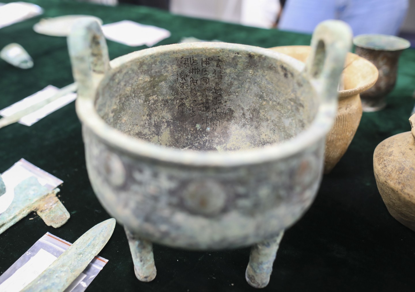 琉璃河遗址考古发掘出土的一件带铭文的青铜鼎。资料图片/新京报记者 浦峰 摄