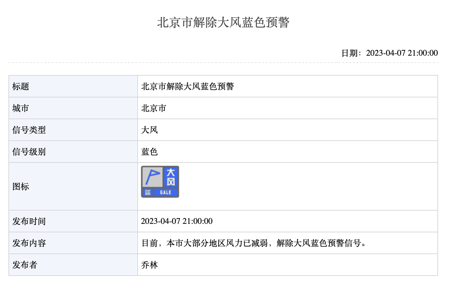 北京解除大风蓝色预警