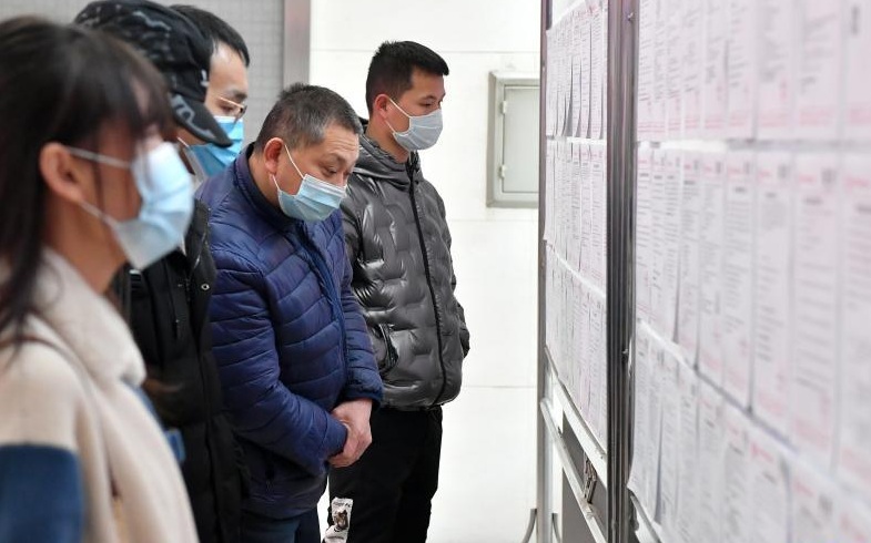 ▲资料图。求职者在职业介绍服务中心查看招聘信息。图/新华社