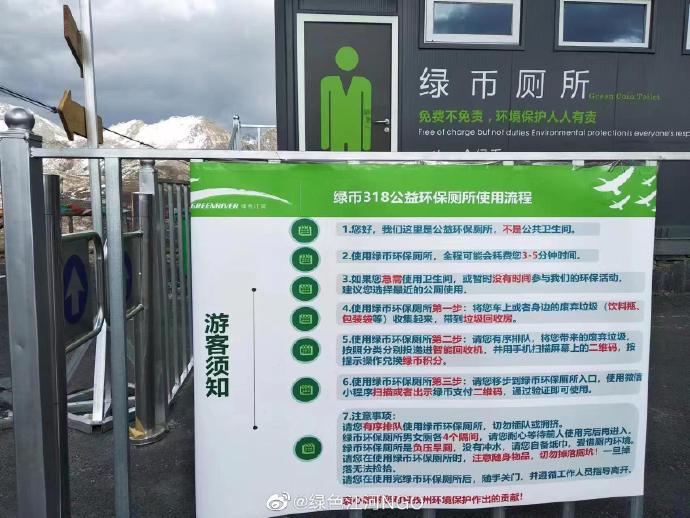 新京报讯 4月9日,“游客吐槽四川甘孜一公厕需凭空瓶进入”一事在网络上引发热议。四川省绿色江河环境保护促进会(简称“绿色江河”)9日在其官博发文回应此事称,鉴于青藏绿色驿站的影响力和示范性,经过认真踩点考察后,提出在青藏绿色驿站的基础上,增加智能垃圾桶,游客通过投放垃圾,手机扫码兑换绿币,支付绿币才能免费上厕所、免费停车,在“免费不免责”、“环境保护人人有责”的基础上,创新推出“绿币318”环保项目。