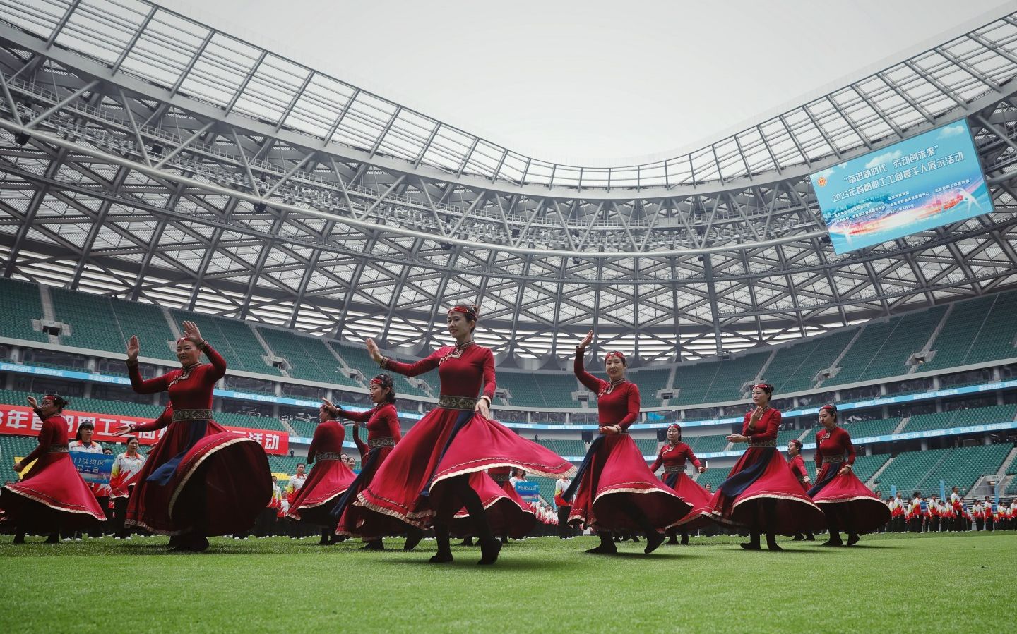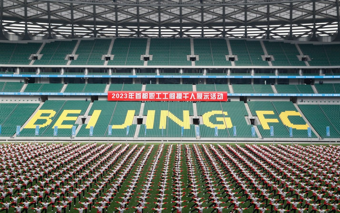 近日,2023年首都职工工间操千人展示活动在改造复建完工后的北京工人体育场内中心场举行。全市16个区总工会、北京经济技术开发区总工会和8个市级产业工会职工代表,以及劳动模范、北京大工匠、新就业形态劳动者等群体的代表约1500人参加展示活动。这次活动是新工人体育场完工后的首场大型职工群众性体育活动。