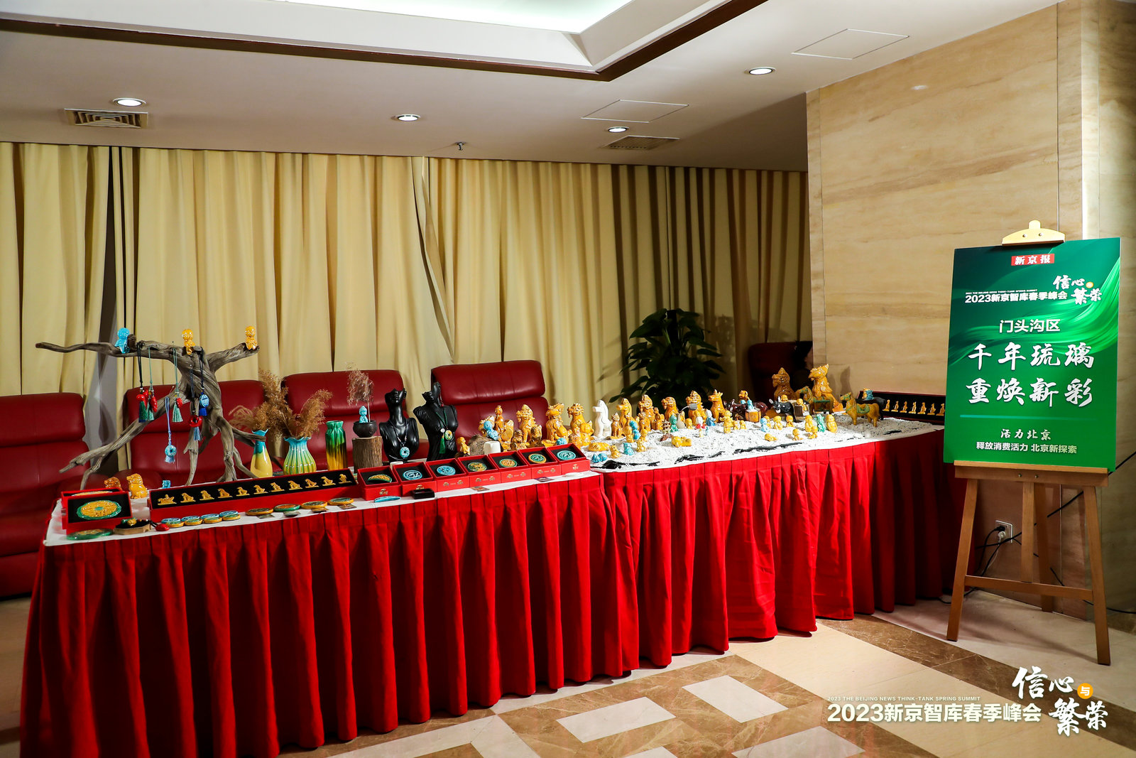 新京报讯(记者周怀宗)4月11日,在新京报社、千龙网主办,新京智库、贝壳财经承办的“信心与繁荣——2023新京智库春季峰会”主题论坛“活力北京”上,来自北京市门头沟区的琉璃文创产品在会场展示,吸引了众多专家学者和论坛嘉宾。