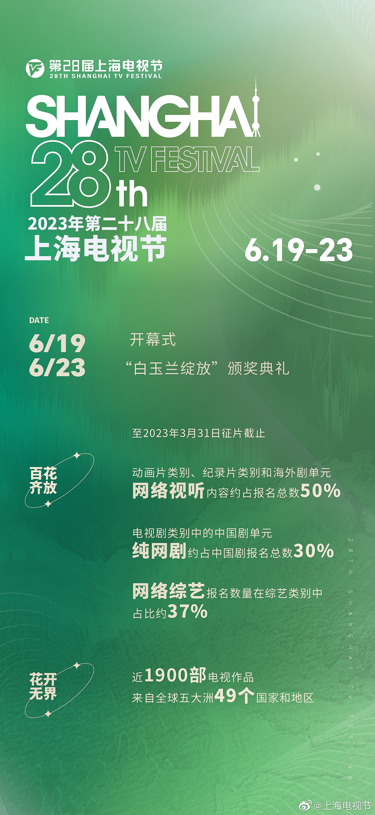 第28届上海电视节定于6月19日开幕,6月23日晚颁奖