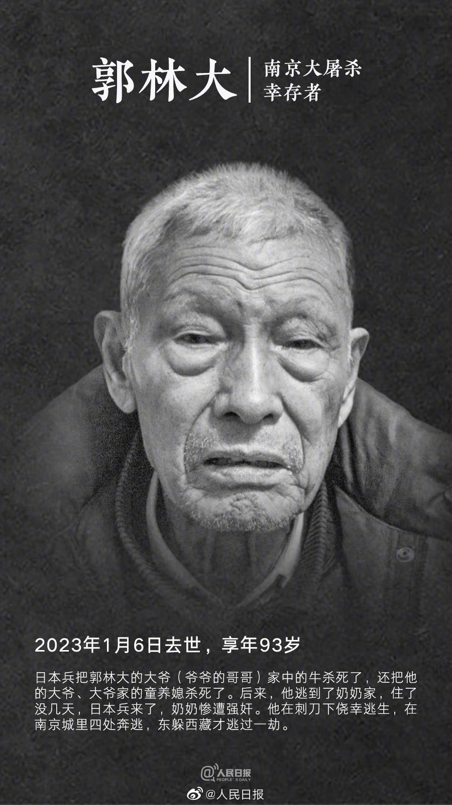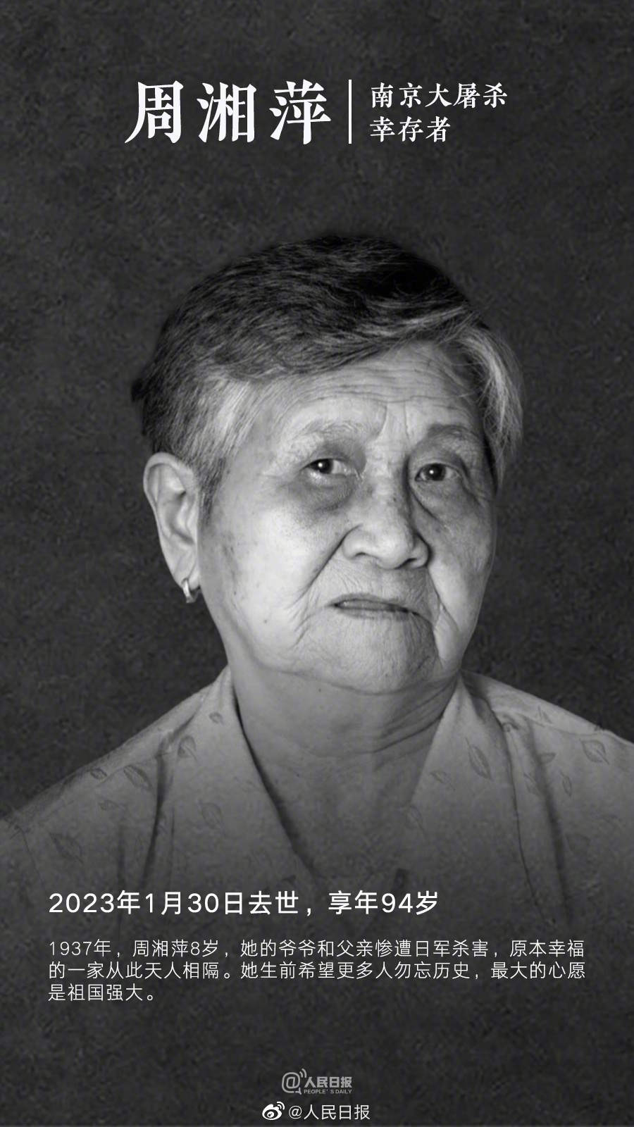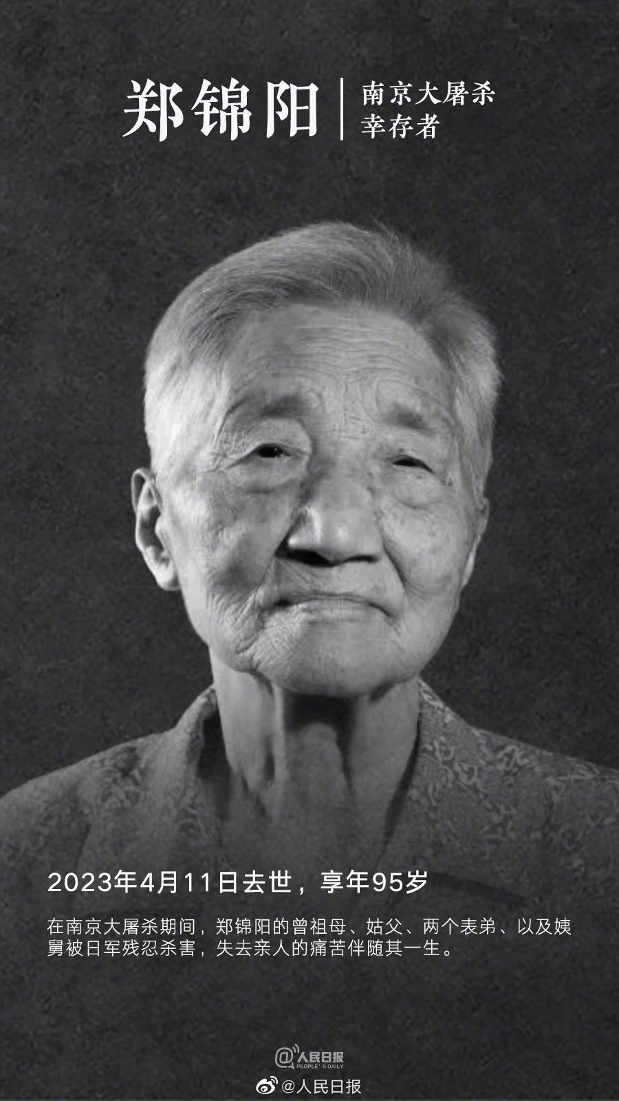据人民日报消息,4月11日,南京大屠杀幸存者郑锦阳去世,享年95岁。今年,已有8位幸存者去世,目前南京大屠杀在册在世幸存者仅剩42位。见证者在减少,但历史不容忘却。悼念逝者,守望和平,吾辈自强!