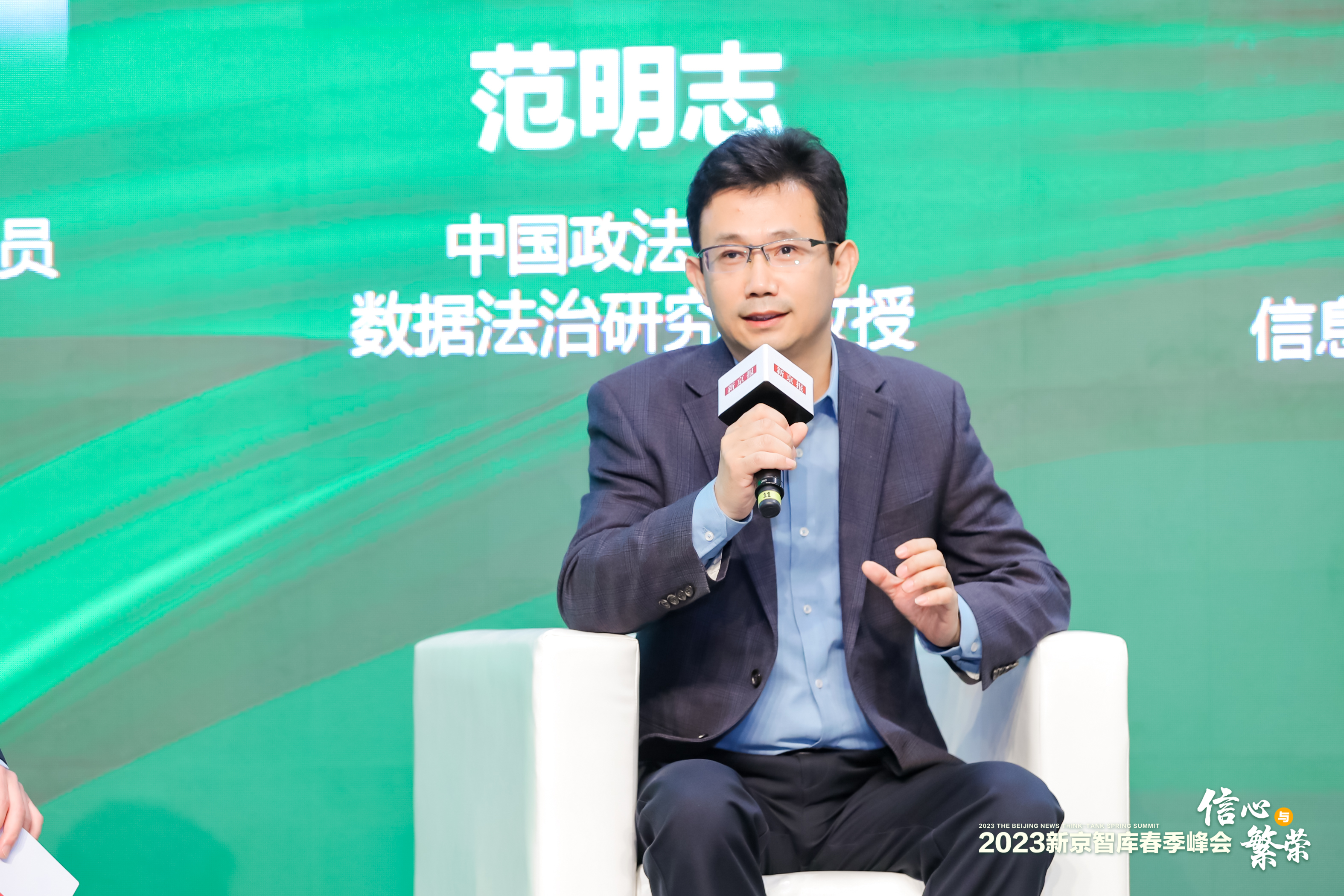 中国政法大学数据法治研究院教授范明志在“全面数字化与数字消费提级”圆桌论坛上发言。