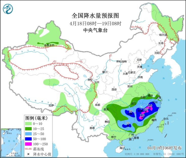 中央气象台18日早晨发布暴雨蓝色预警:预计今天白天至夜间,南方地区本轮较强降雨过程将进入最强时段,湖南、江西、安徽、浙江、福建、广西、广东等地部分地区有大到暴雨,江西东部、浙江西南部、福建西北部等局地有大暴雨(100~130毫米);上述部分地区伴有短时强降水(最大小时降雨量20~50毫米,局地可超过60毫米),局地雷暴大风等强对流天气。