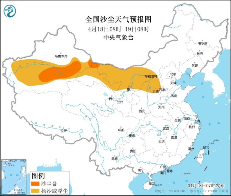 另外,18日至21日,一股强冷空气将自西向东影响我国大部地区。期间,西北地区大部、华北、东北、黄淮、江汉、江淮等地先后有4~6级风,阵风7~9级,新疆山口地区阵风可达12级;上述地区日平均气温先后下降6~10℃,部分地区降温12~14℃,局地16℃以上。除了大风降温天气,未来三天,新疆东部和南部、青海柴达木盆地、甘肃、内蒙古中西部、宁夏、陕西中北部、华北北部、东北地区西部等地有扬沙或浮尘天气,新疆东部和南部、内蒙古西部的部分地区有沙尘暴。