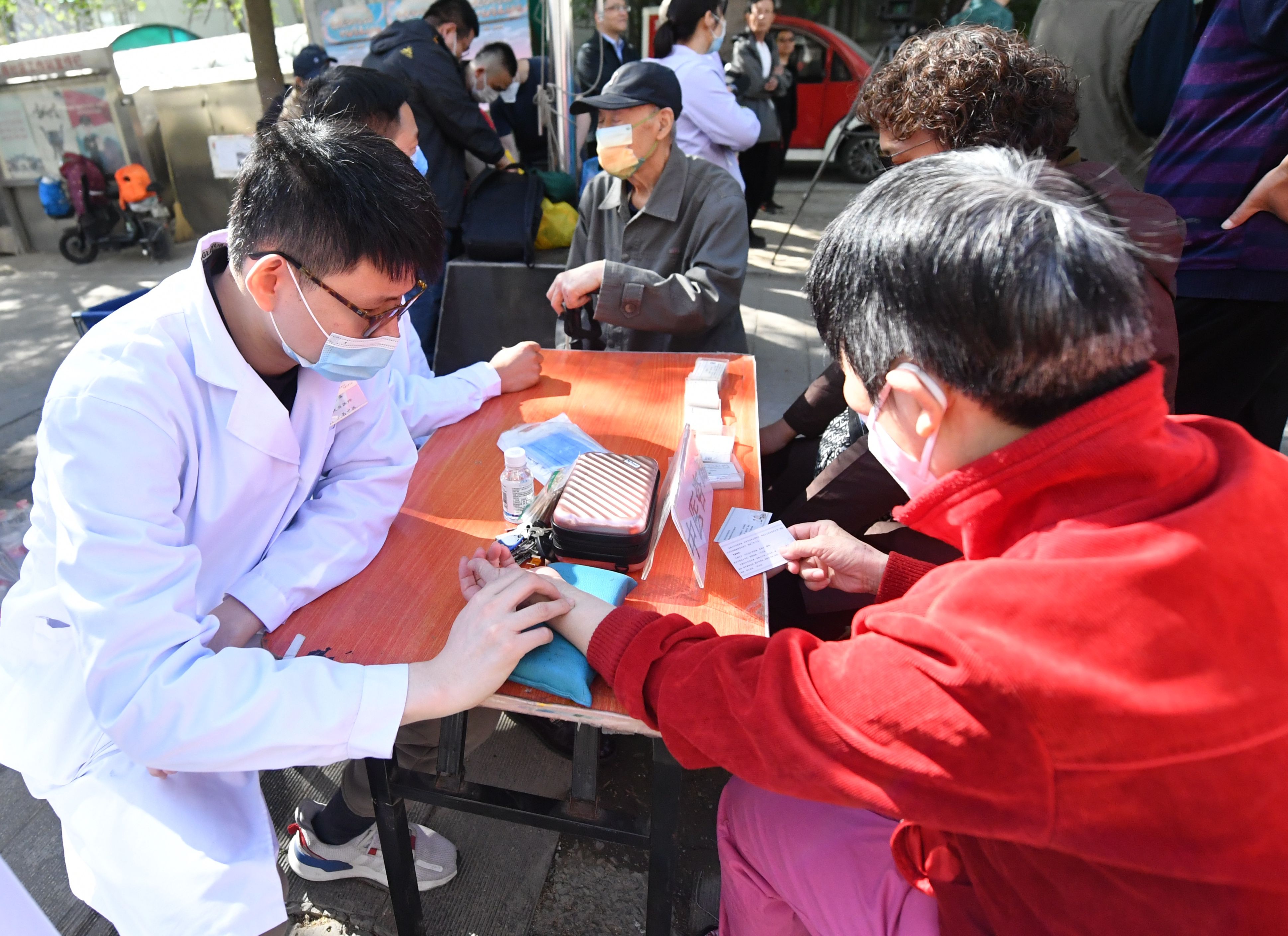 活动现场,医生为社区居民把脉看病。 新京报记者 王贵彬 摄
