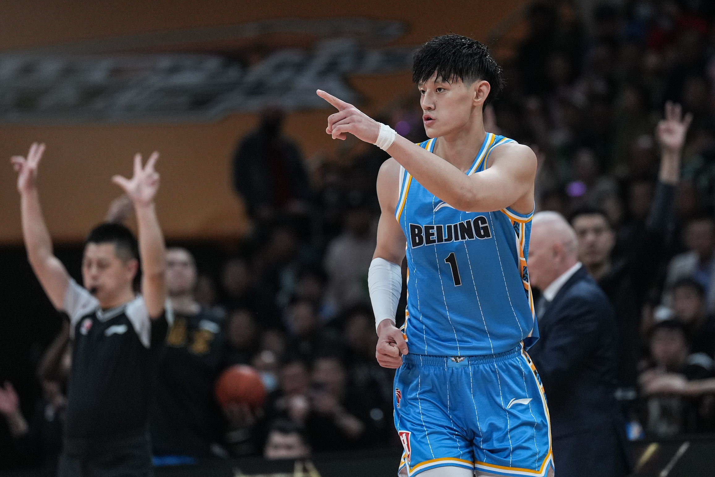 张镇麟首次在主场打季后赛,他也直言从来没见过现场有这么多观众。在火热的氛围中,“金金”成为辽宁队第一个站出来的球员,三分、扣篮、跳投,各种进攻手段轮番拿出。首节还剩2分钟时,他接付豪的救球后,三秒区外直接起飞,单手持球在空中划出惊人弧度,隔着防守人灌入筐中,这记战斧隔扣冲上热搜,甚至有人称之为赛季最佳进球。辽宁队首节打出31比15,张镇麟独得14分,全场拿下23分、6个篮板、3次助攻和3次抢断,正负值+23全场最高。