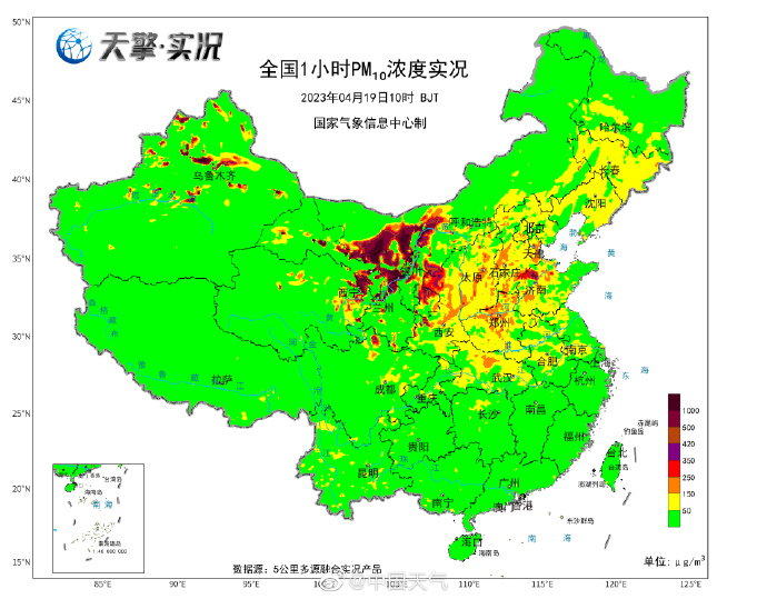 全国1小时空气质量指数情况(4月19日10时)。图/国家气象信息中心