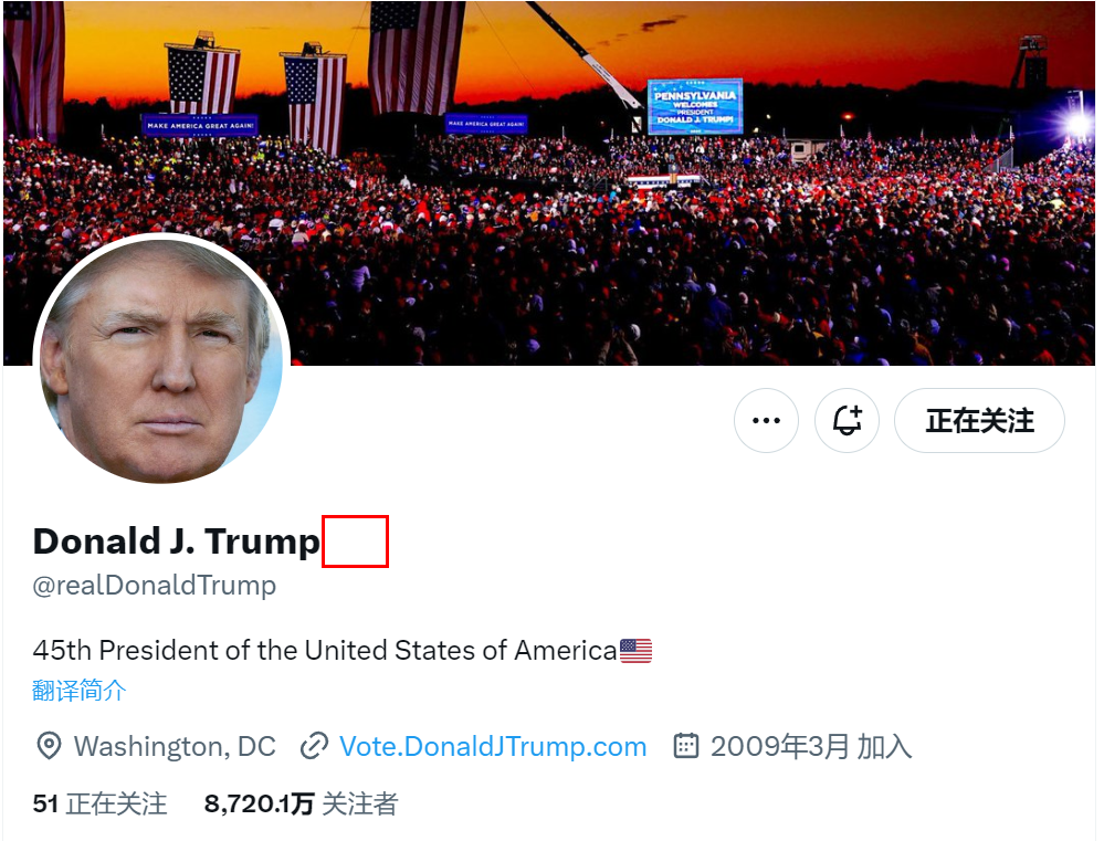 特朗普蓝“V”标志被取消(资料图)