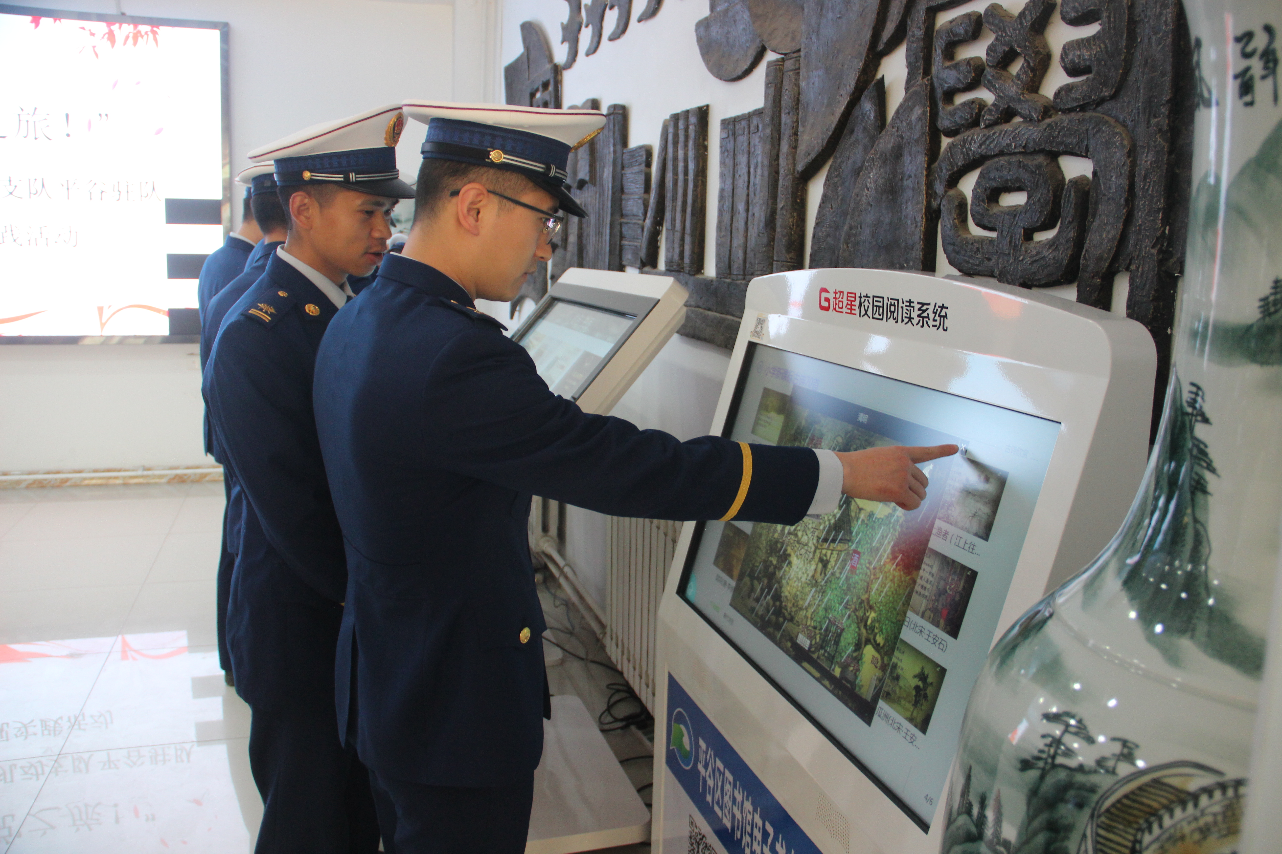 在图书馆工作人员的介绍引领下,指战员们详细了解了图书馆的主要功能区、图书资源及应用情况,参观了“冰心奖”陈列室,了解冰心的生平事迹和优秀作品。随后,指战员进一步体验了数字阅读,并进行读书交流活动。