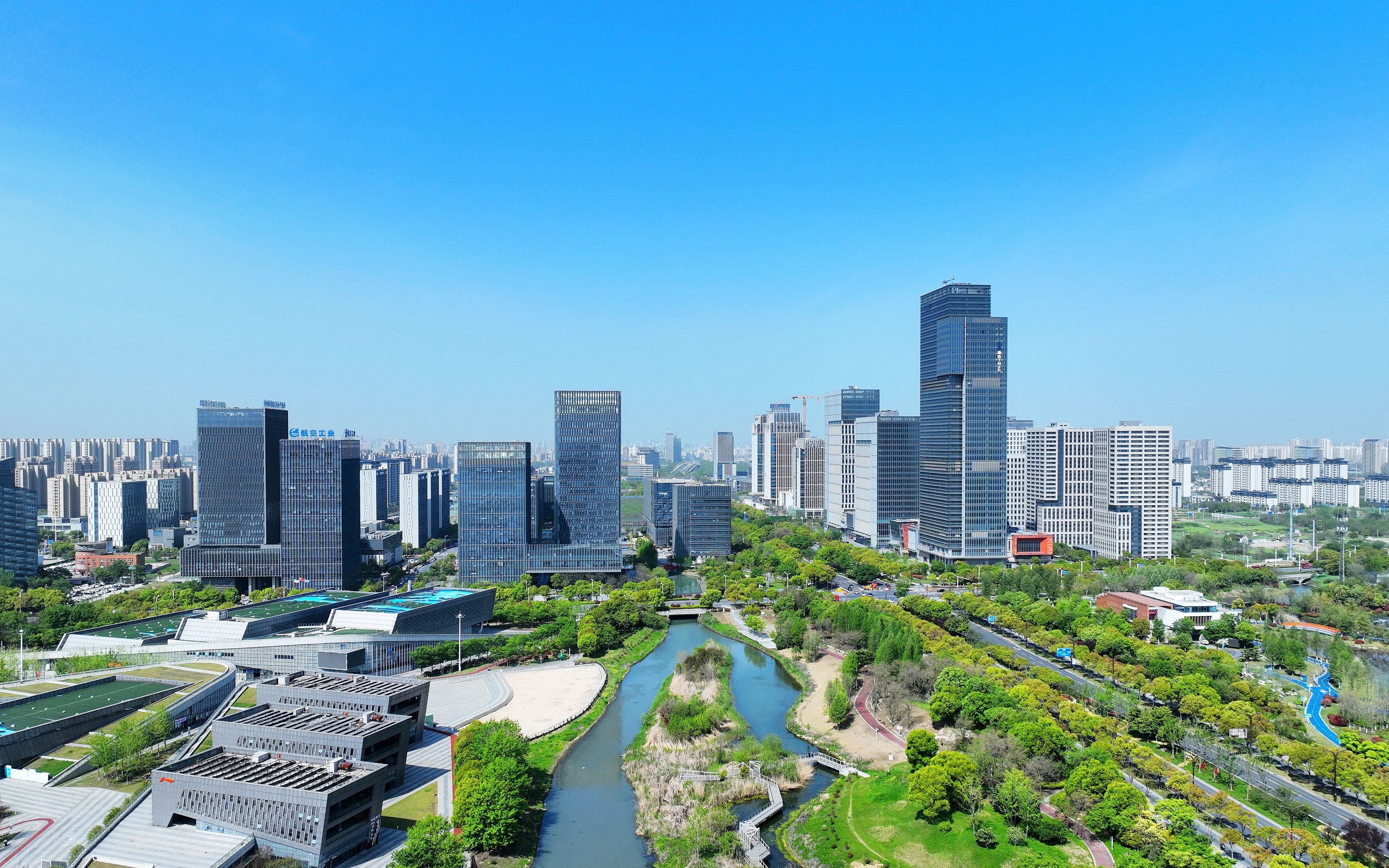 4月13日,江苏扬州,在蓝天白云的映衬下,湖面明净如画,湖畔绿树成荫,风光秀丽。图/视觉中国