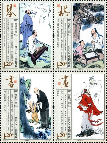 在邮票展现场,诗词歌赋、琴棋书画、中国篆刻、文房四宝等优秀的传统文化,都以典型符号的方式,被定格在方寸之中。中华文化传承大厅墙上所展示的邮票,每一张都能看到中华文明的影子。比如出土的虎、凤文物,距离我们6500-7000多年的河姆渡遗址,以及彩陶、汝窑等。