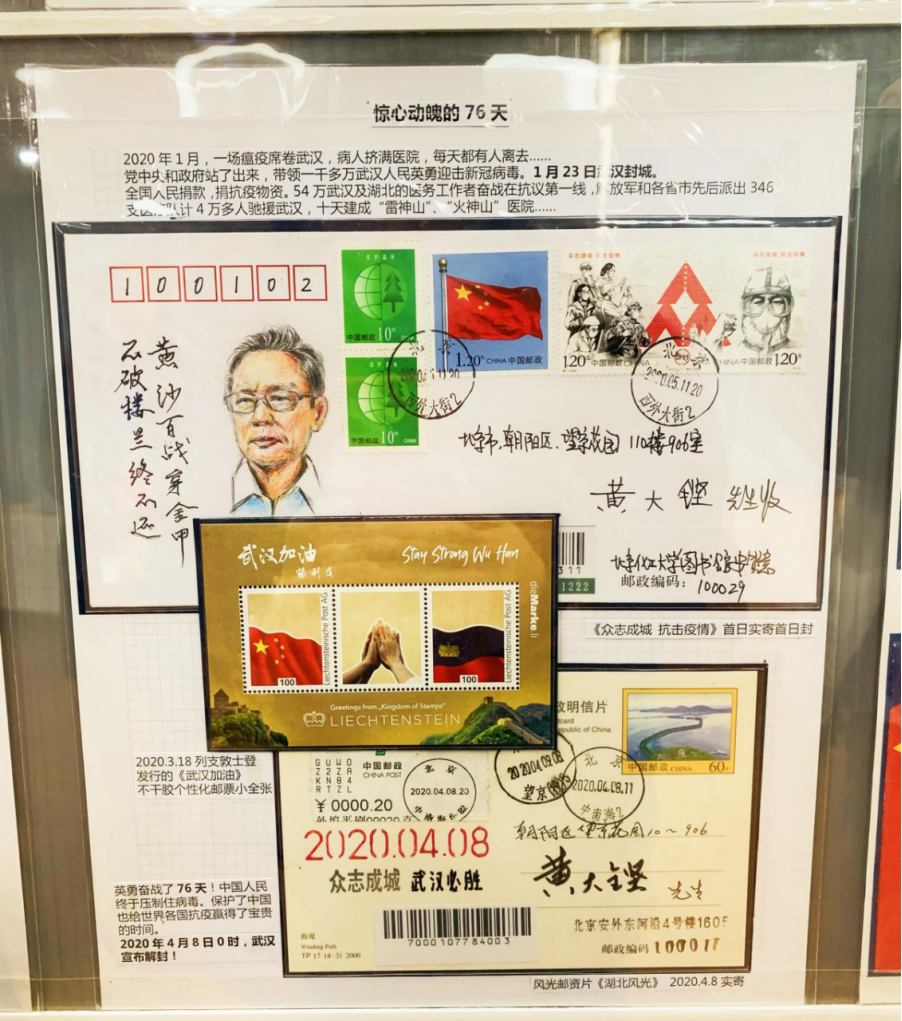 本次邮票展,还展出了一些集邮爱好者的“私家收藏”。如《惊心动魄的76天》邮集,包含《众志成城 抗击疫情》首日实寄封、“武汉加油”邮票、风光邮资片《湖北风光》等,再现了武汉封城76日抗击疫情的故事,浓缩了我国生命至上、举国同心的战疫精神。