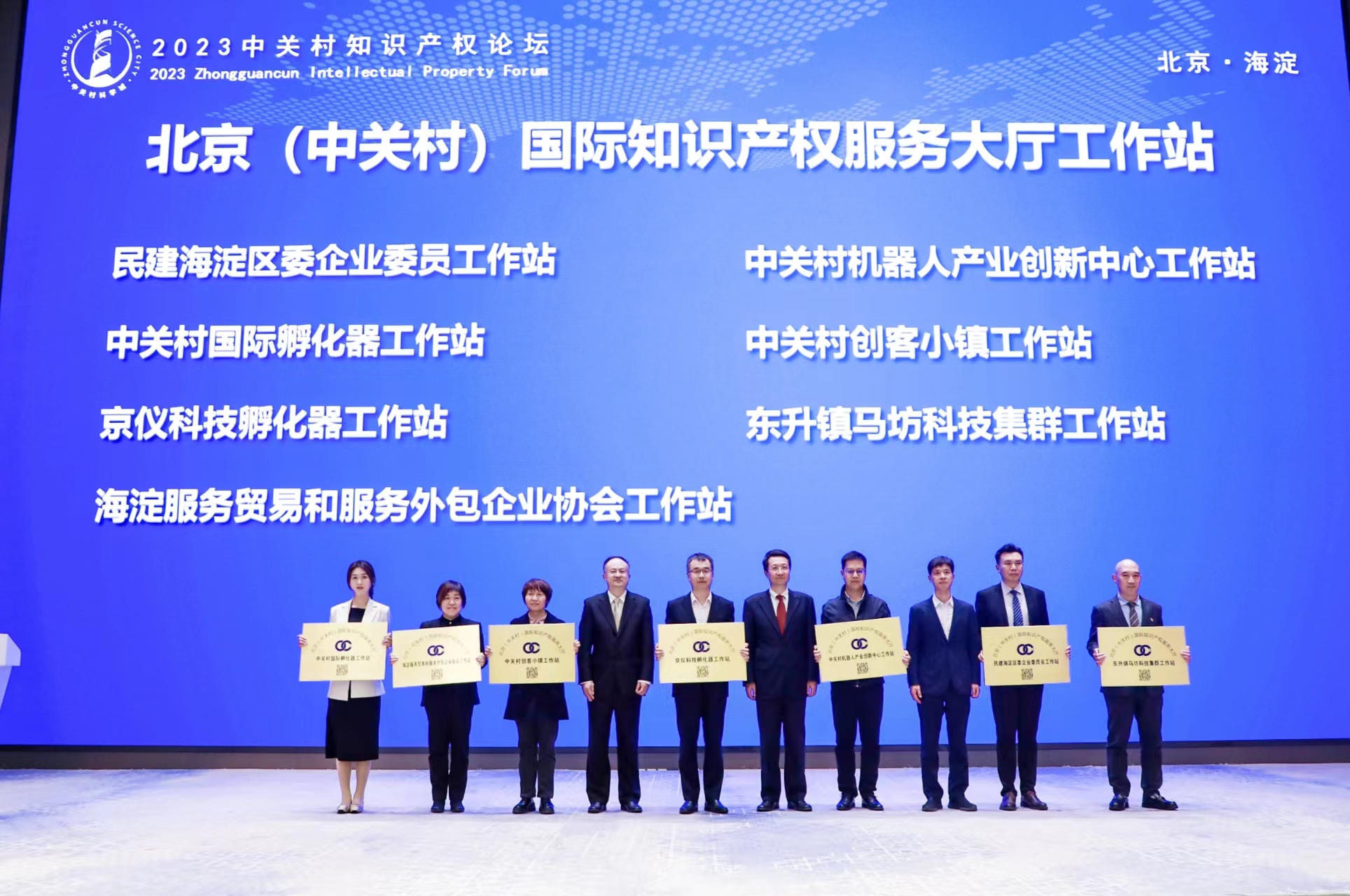 嘉宾为北京(中关村) 国际知识产权服务大厅工作站授牌。新京报记者 浦峰 摄