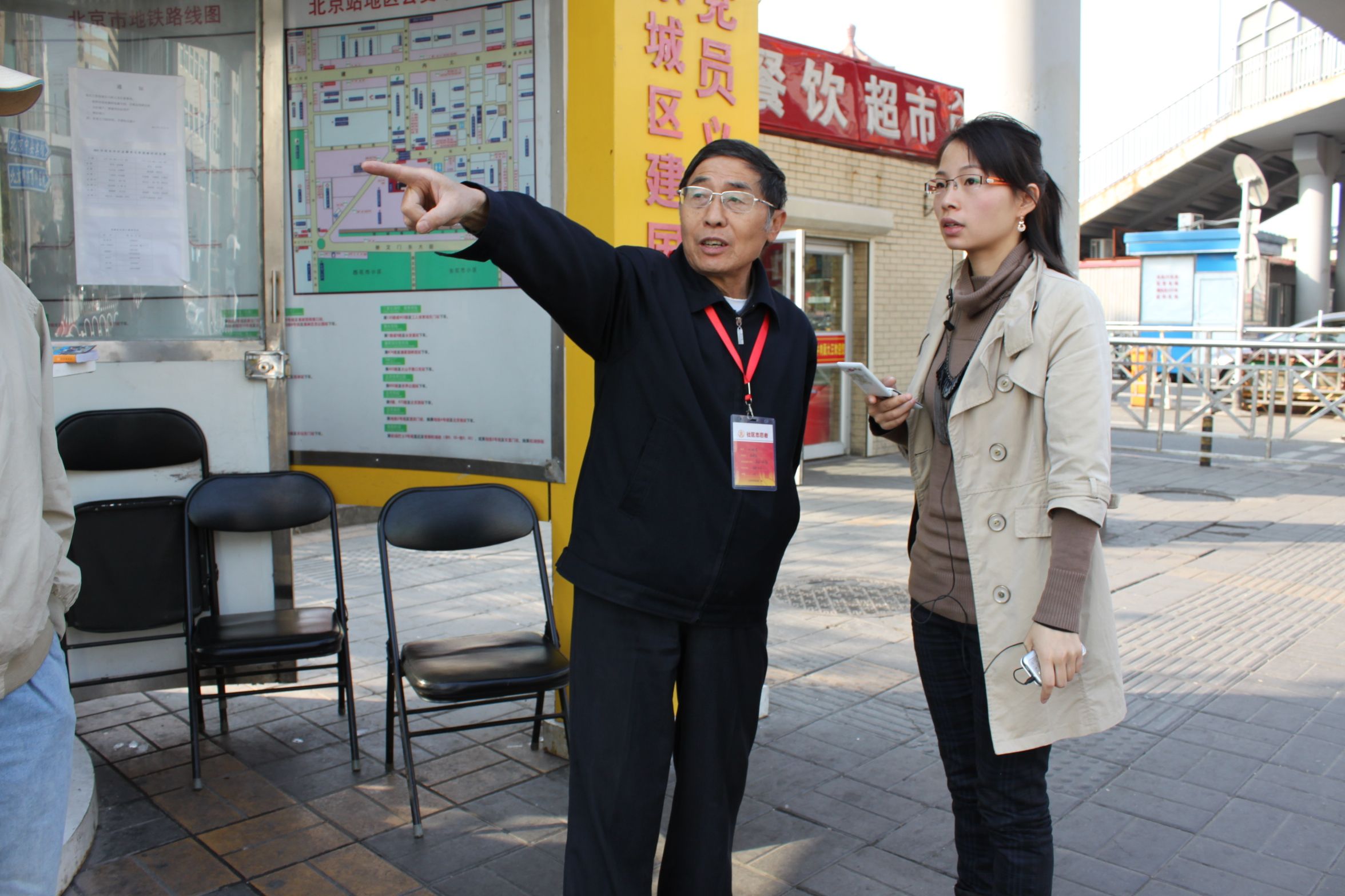 汪维信今年75岁,来自建国门街道,是北京站老党员义务指路队的队长,在北京站义务指路17年。