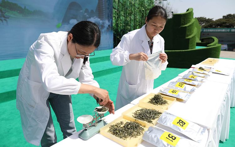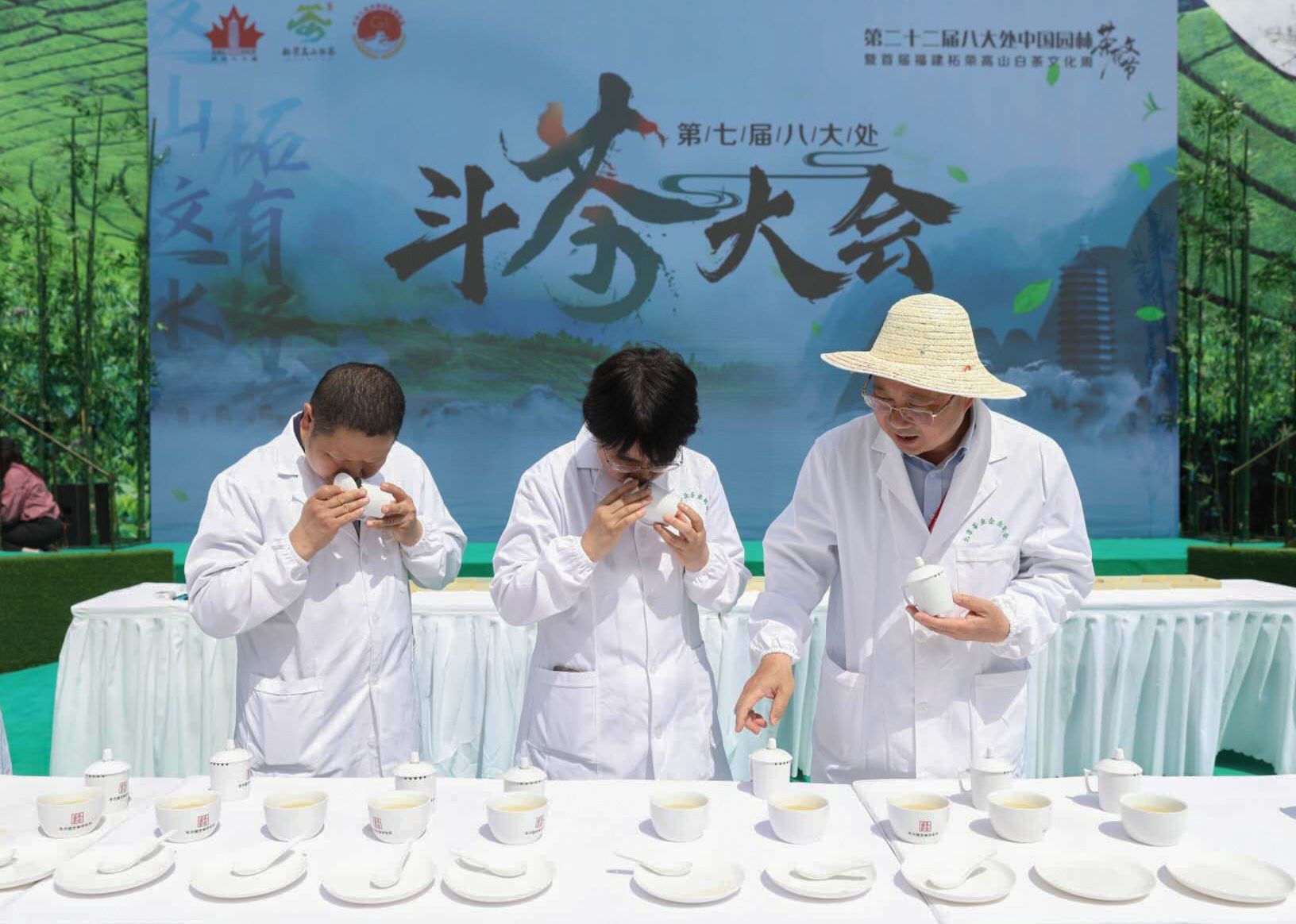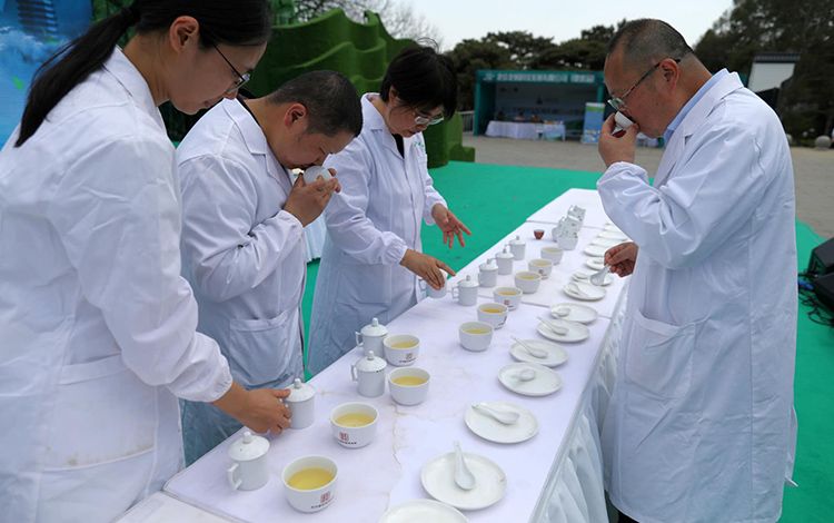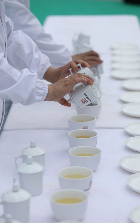 专家在品尝茶水味道。最终由专家评委团,按照国家标准采用双盲编码审评,综合茶叶的外形、汤色、香气、滋味、叶底等各项因子进行评分,在三个参赛品类中,分别评出茶王1名、金奖2名、银奖3名,优胜奖6名和百姓评委评出的“百姓最喜欢的茶”。