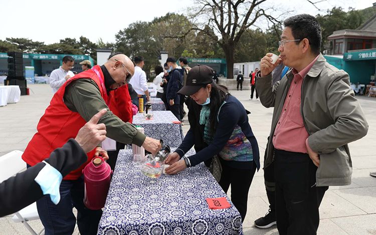 游客在品尝茶汤。4月28日至5月3日,第二十二届八大处中国园林茶文化节暨首届福建柘荣高山白茶文化周在八大处公园举办,期间有柘荣非遗表演、柘荣高山白茶精品展、斗茶大会、茶文化及地方产品展销会等一系列活动。
