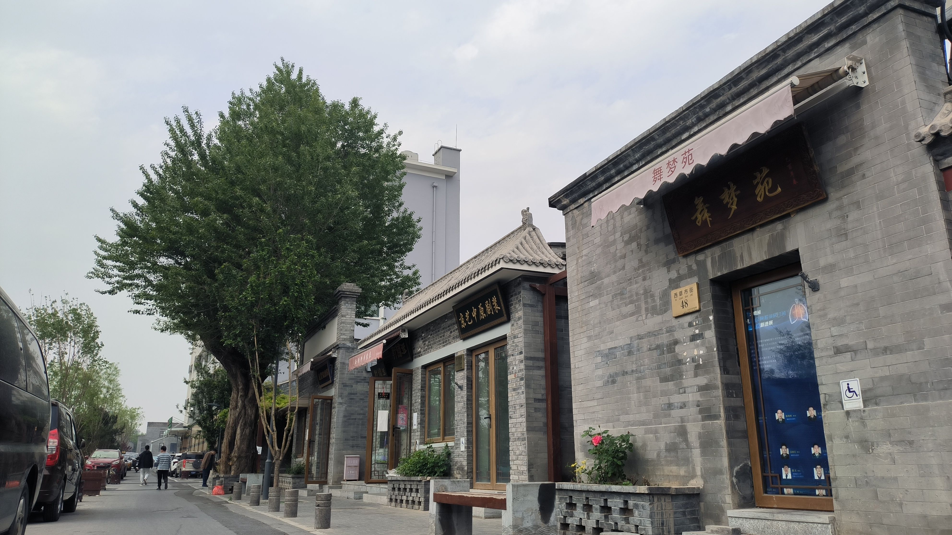 西草市街南起天坛路,北至珠市口东大街,道路全长约520米,西侧与南中轴线直线距离仅有50米。由于历史原因,曾经的西草市街与南中轴线之间有一墙之隔。2019年西草市街北段,经过拆除违建等整治,恢复了沿线建筑的传统风格、色调和肌理,修建了休闲小广场,增加了口袋公园、绿化池、居民议事厅等公共空间,并优化提升了沿线传统剧装产业,凸显了百年历史“剧装一条街”的区域特色风貌。