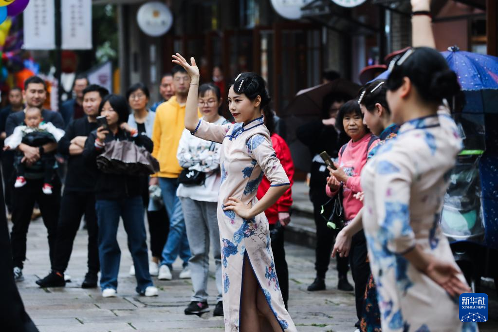 ▲4月29日,演员在浙江省杭州市余杭区瓶窑老街表演。图/新华社