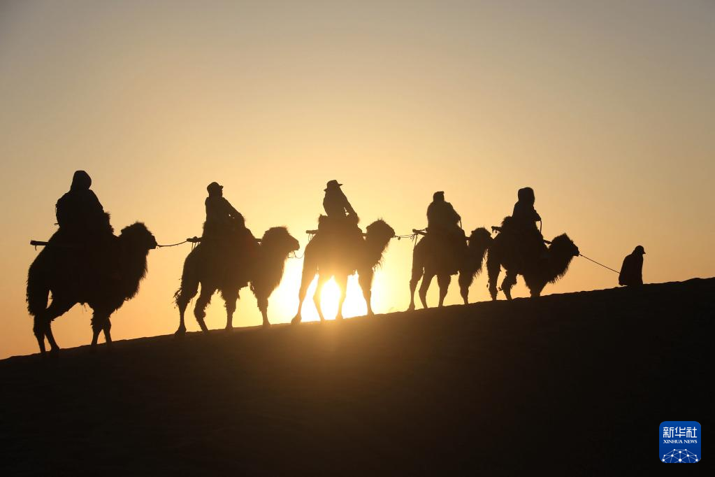 ▲4月29日,游客在甘肃敦煌鸣沙山月牙泉景区游览。图/新华社