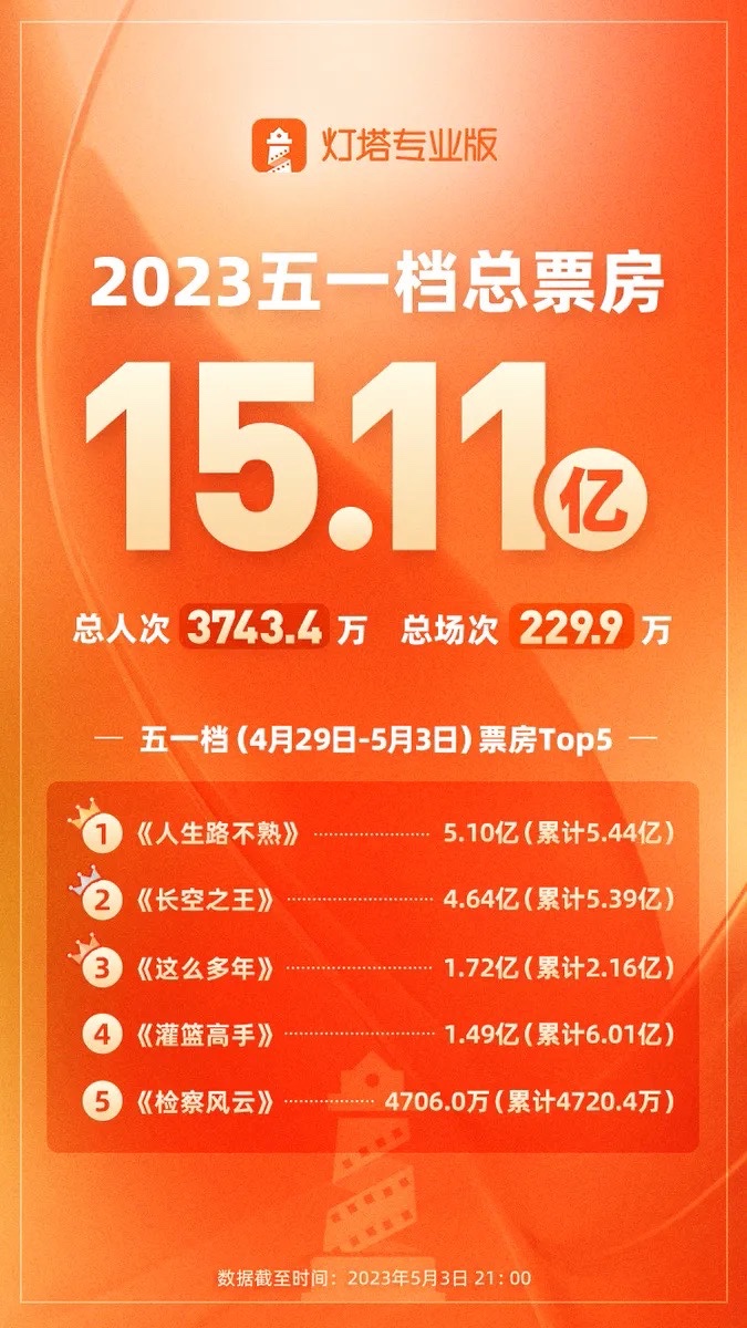 2023五一档票房15.11亿,为市场恢复打下基础