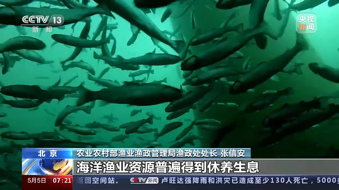 农业农村部渔业渔政管理局渔政处处长 张信安:每年的春夏两季是主要海洋生物种类的繁殖期和幼体生长期,在此期间实施海洋伏季休渔,可以有效地保护海洋生物的产卵群体和幼生群体,海洋渔业资源普遍得到休养生息。