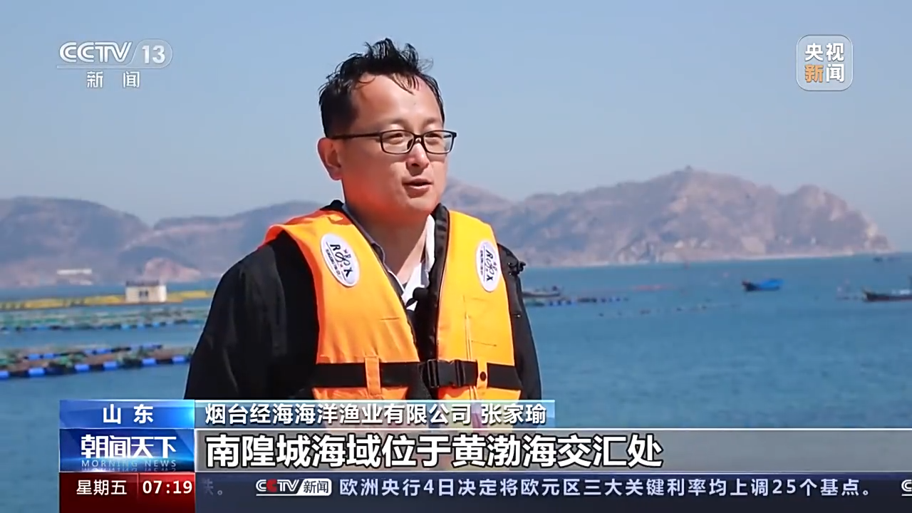 烟台经海海洋渔业有限公司 张家瑜:南隍城海域位于黄渤海交汇处,这里的水全部达到了国家一类水质标准。这里海水流速非常快,在每秒1米以上,相当于网箱每天自然换水1000多次。所以说在经海网箱里生长的鱼,基本上跟野生的鱼没有任何区别。