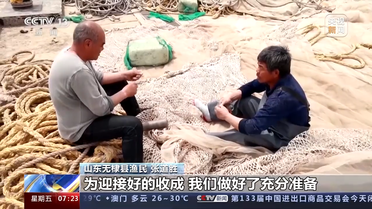山东无棣县渔民 张道胜:这期间,我们维修船只,补补网具,这都是我的饭碗。为迎接好的收成,我们做好了充分准备。