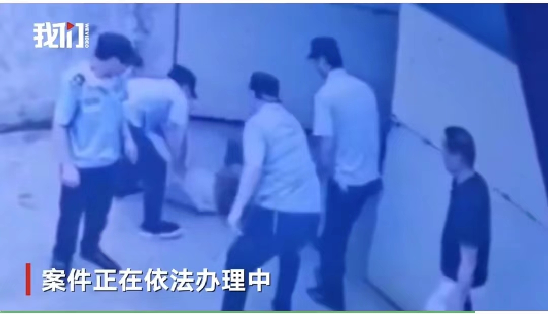 ▲视频中,一名便装男子和4名制服男子,对骑车男子拳脚相加。图/新京报我们视频截图