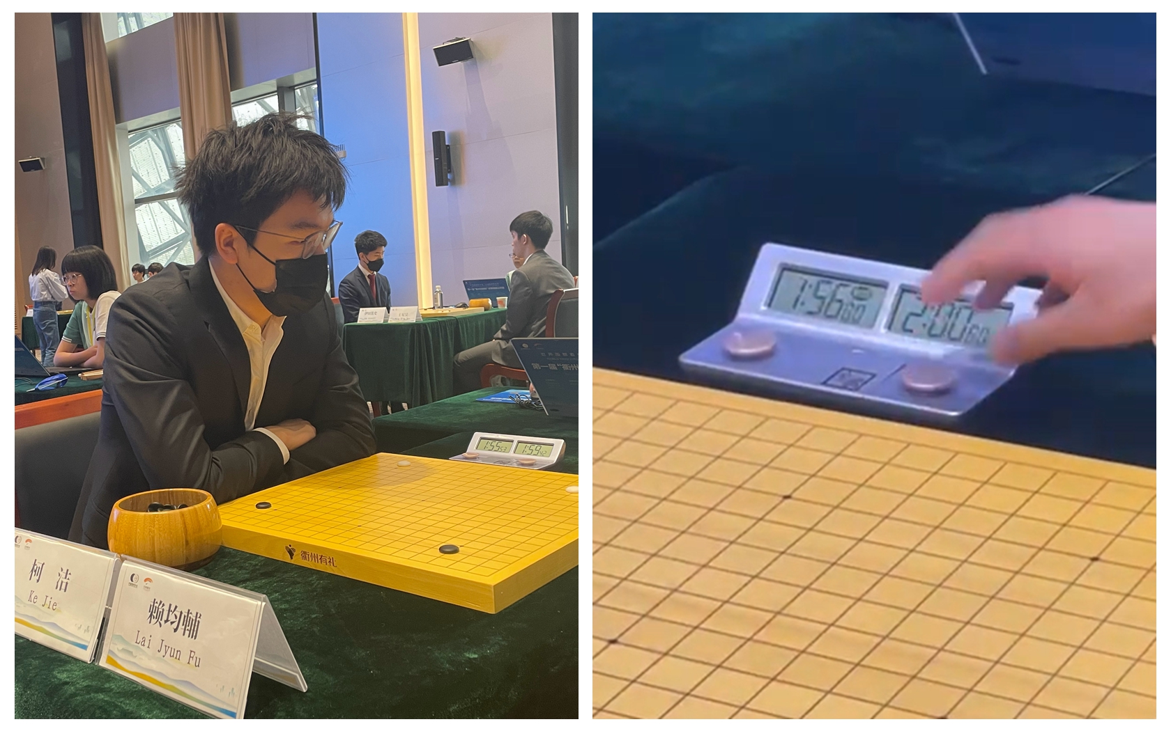 比赛在当日12时30分进行,柯洁两分钟后姗姗来迟。在对局落座前,他抬起左手腕,看了一眼手表。按照规定需双倍罚时,两小时的常规用时被扣掉了4分钟。