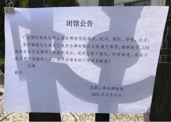 闭馆公告(图源:吕梁山革命博物馆官方公众号)