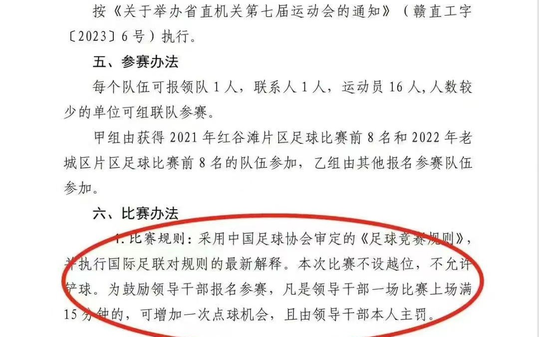 省直机关足球赛为领导定特殊规则?官方:业余赛,为鼓励领导参加