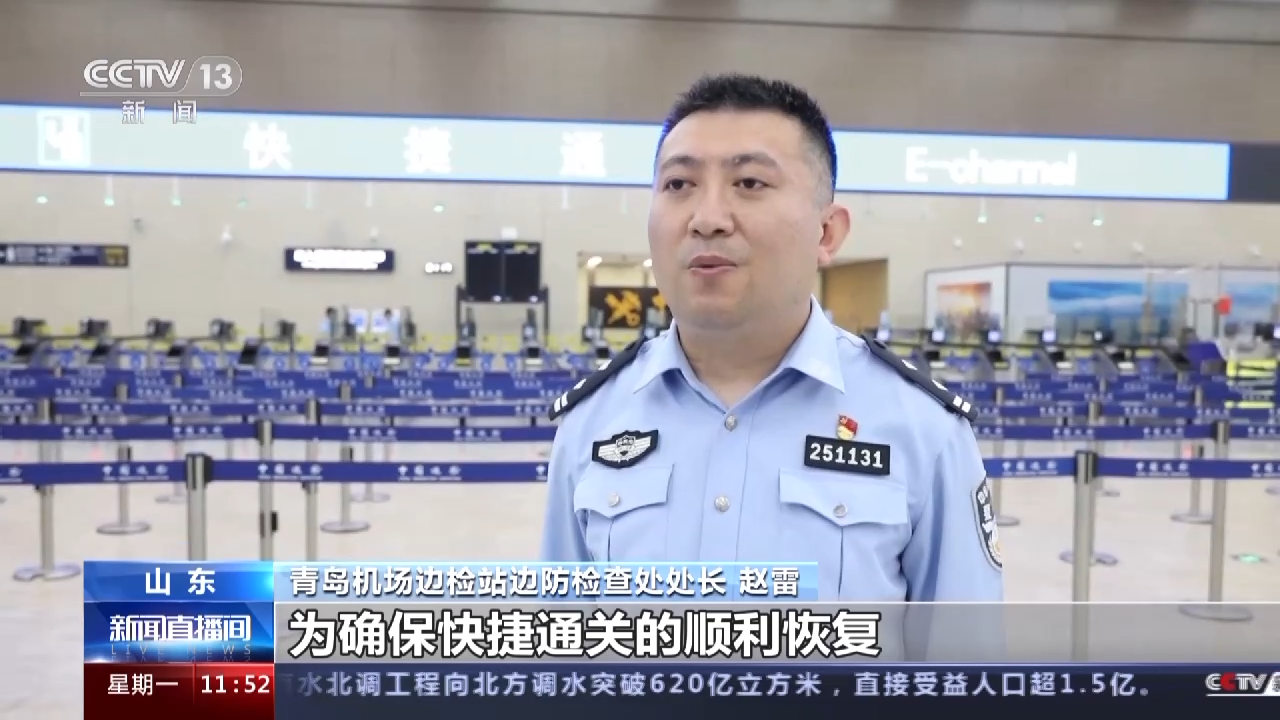 青岛机场边检站边防检查处处长 赵雷:为确保快捷通关的顺利恢复,我站对所有的快捷通道进行了全面的维护测试,确保每一位旅客都能感受到快捷高效的通关体验。