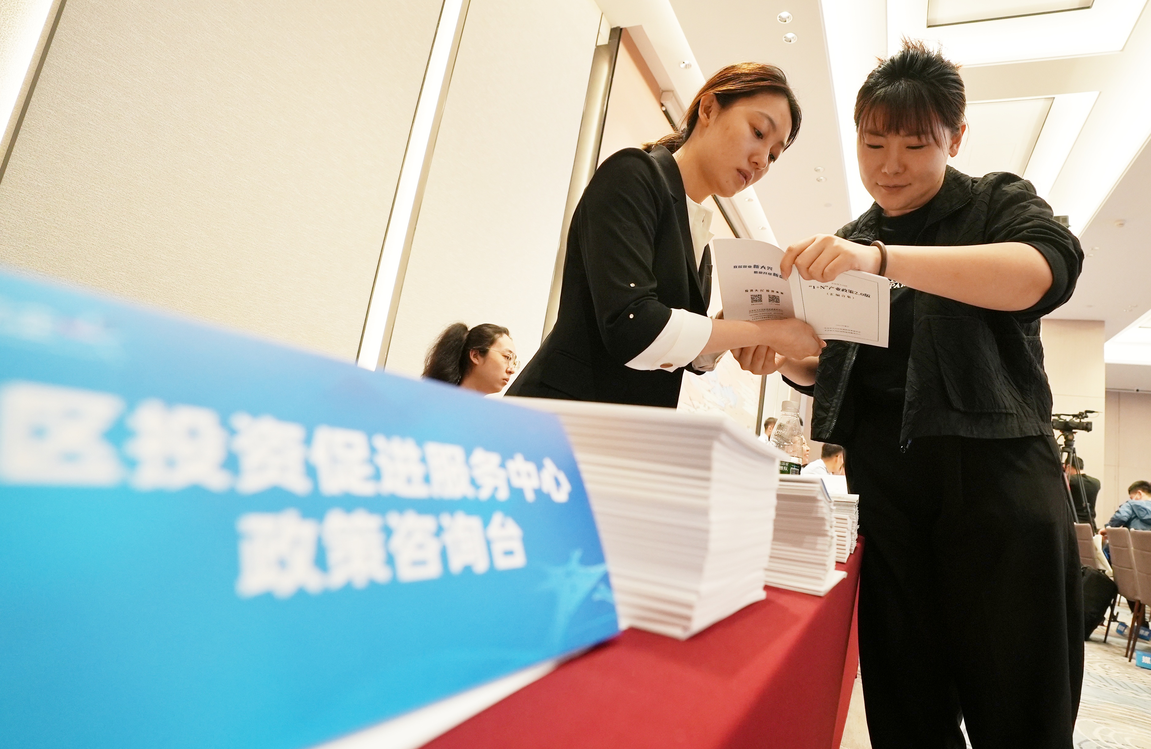 大兴区投资促进服务中心政策咨询台。新京报记者 李木易 摄