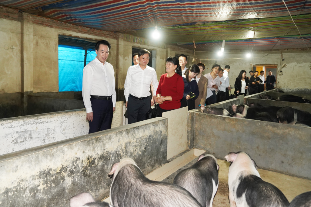 张作林(左一)在调研宁乡花猪的原生态饲养方法(来源:宁乡发布)