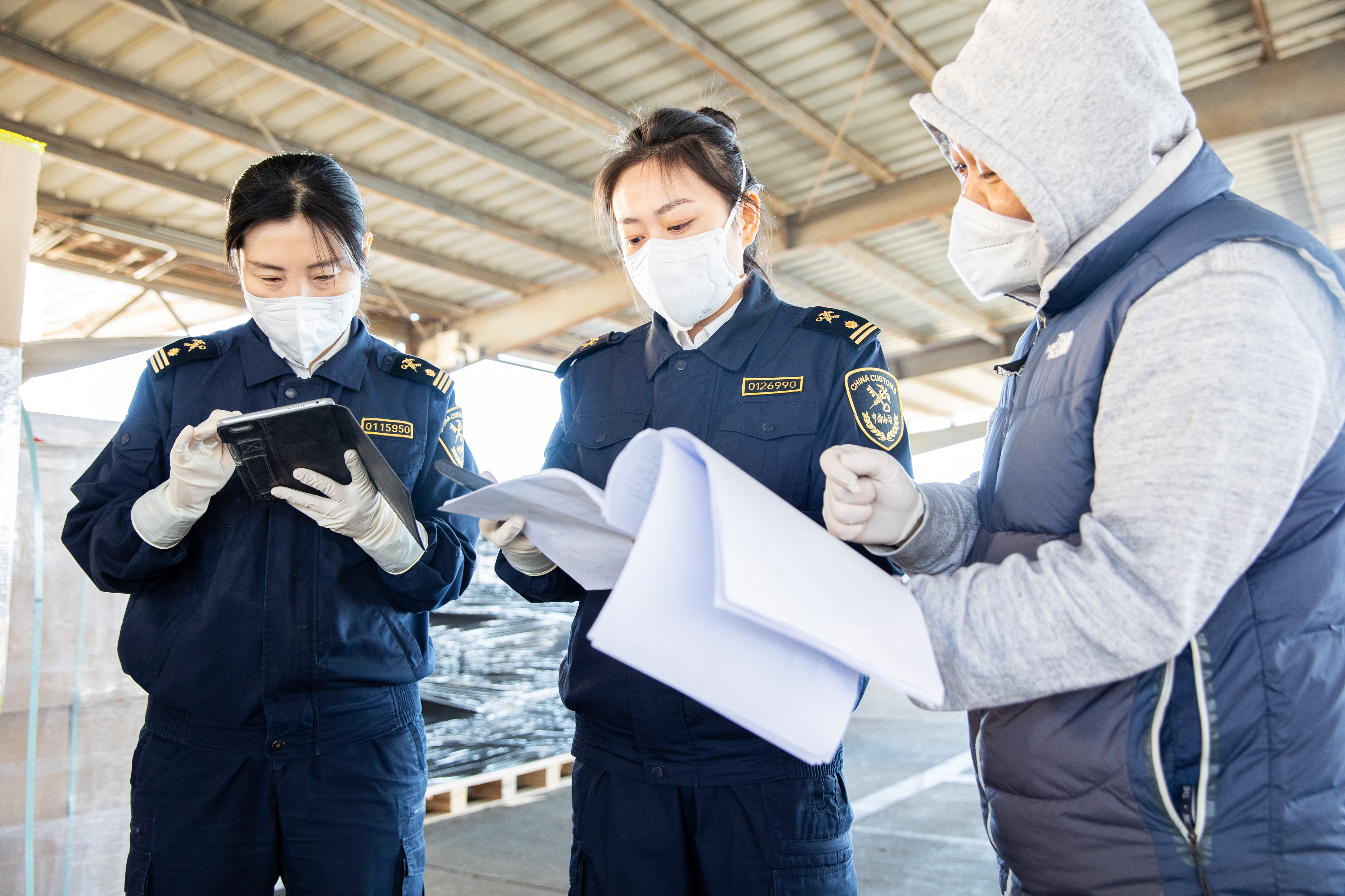 北京海关所属首都机场海关关员正在对进境货物进行现场查验。方星 摄