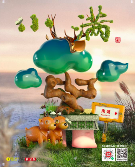 “悠栽逛中轴”由黑弓BLACKBOW与新京报联合出品,是一款结合北京中轴线线上-线下地标打卡、数字IP“中轴悠栽仔”趣味收集、AR互动拍照于一身的中轴元宇宙小程序,已正式上线。