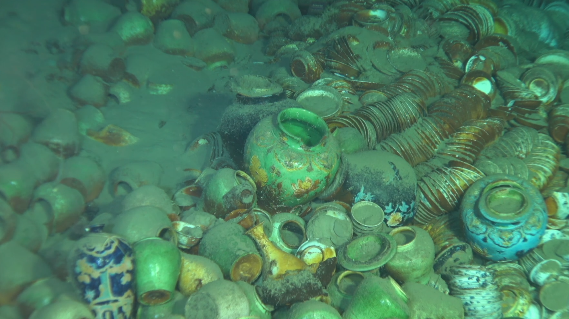 2022年10月,考古团队在我国南海西北陆坡约1500米深度海域发现两处古代沉船。其中一处遗物以瓷器为主,推测文物数量超过十万件,根据出水文物初步判断为明代正德年间(1506-1521),定名为南海西北陆坡一号沉船。另一处以大量原木为主,初步研判是从海外装载货物驶往中国的古代沉船,时代约为明代弘治年间(1488-1505),定名为南海西北陆坡二号沉船。