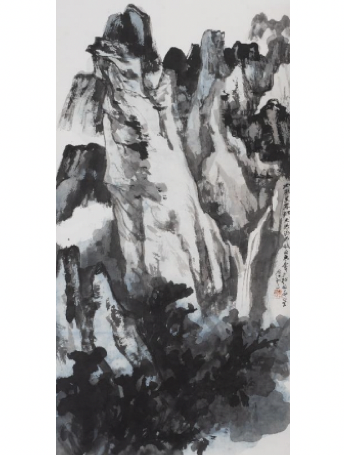 佳士得香港今春举办的傅氏家族收藏书画展中,傅氏家族收藏的张大千作品《悬泉图》(主办方供图)。