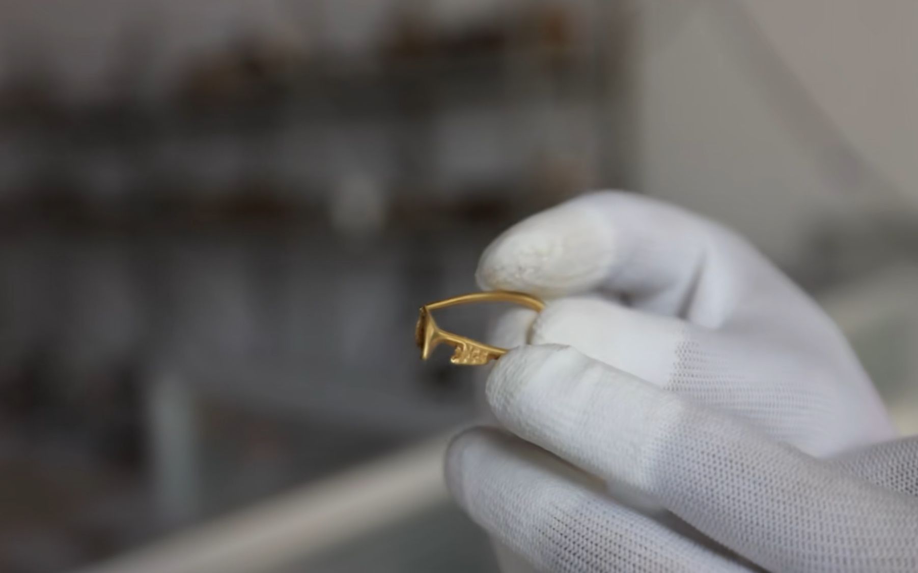 M77出土的扣针形带翼喇叭口金耳环。图/北京市考古研究院