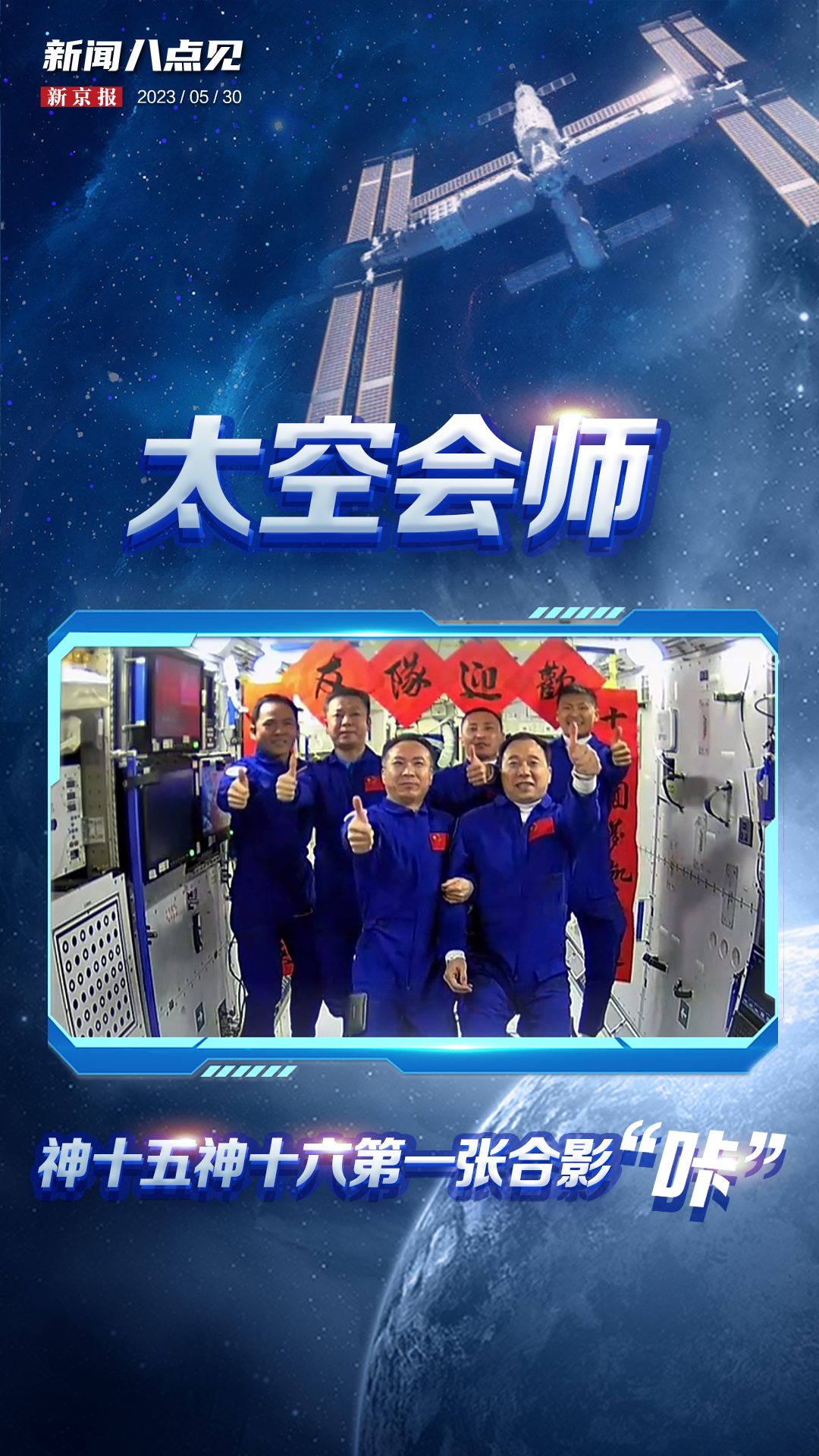 神舟十五号、神舟十六号航天员乘组拍下“全家福”,共同向牵挂他们的全国人民报平安。后续,两个航天员乘组将在空间站进行在轨轮换。其间,6名航天员将共同在空间站工作生活约5天时间,完成各项既定工作。