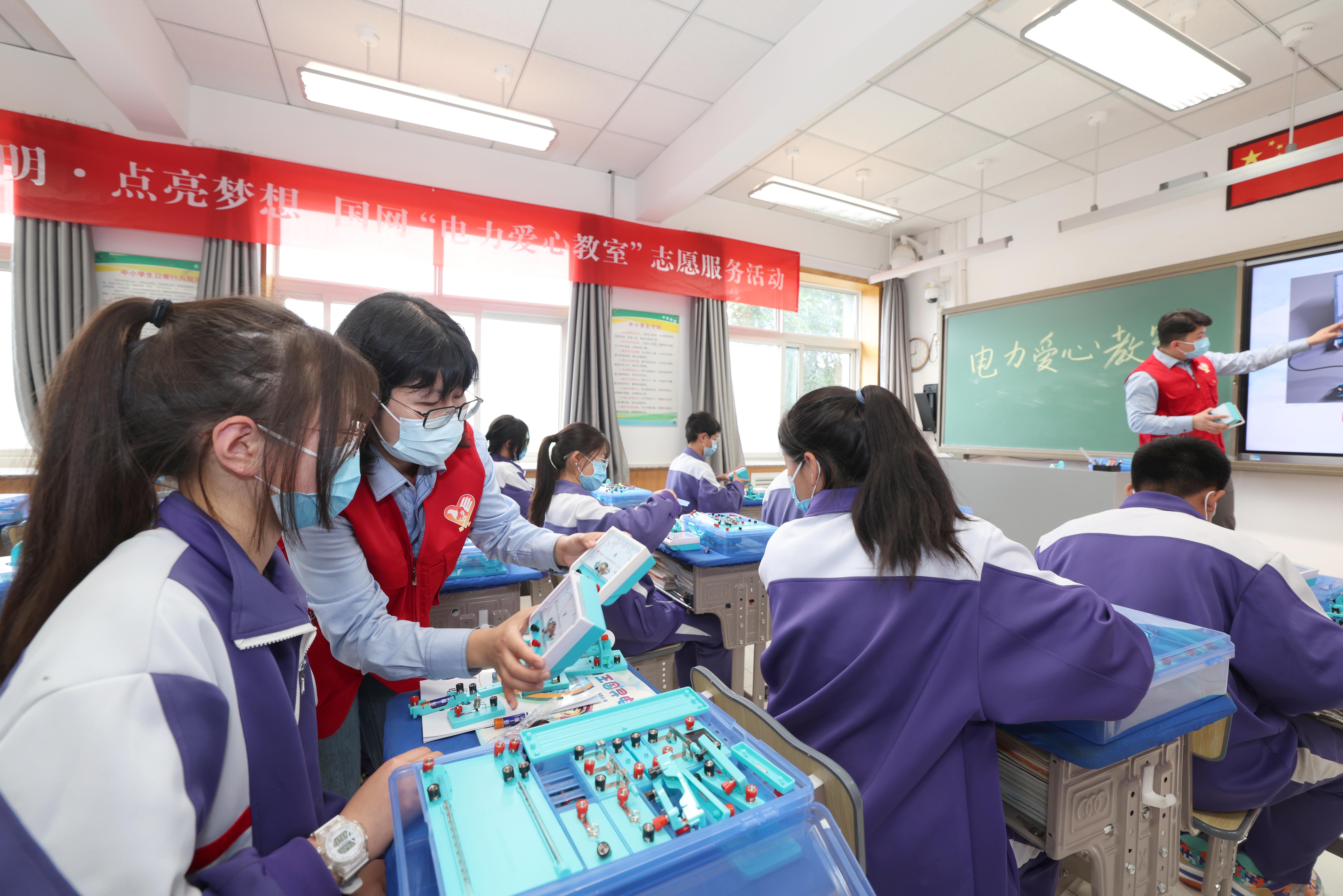 5月30日,斋堂中学,国网北京门头沟供电公司员工在北京市首个国家电网“电力爱心教室”开展志愿服务活动。程伟 摄