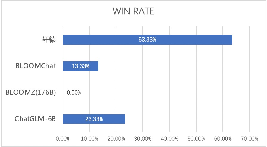 因此相较于通用大模型,度小满的「轩辕」在金融名词理解、金融市场评论、金融数据分析和金融新闻理解等金融场景任务上的表现更为突出。从对比测评中也能看到,他赢得了150次回答中63.33%的胜率,显著优于其他几个大模型。