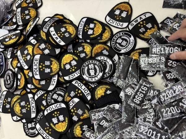 警方捣毁2处非法销售窝点,查获各类警用、军用装备标志一万余件。图源:上海铁警
