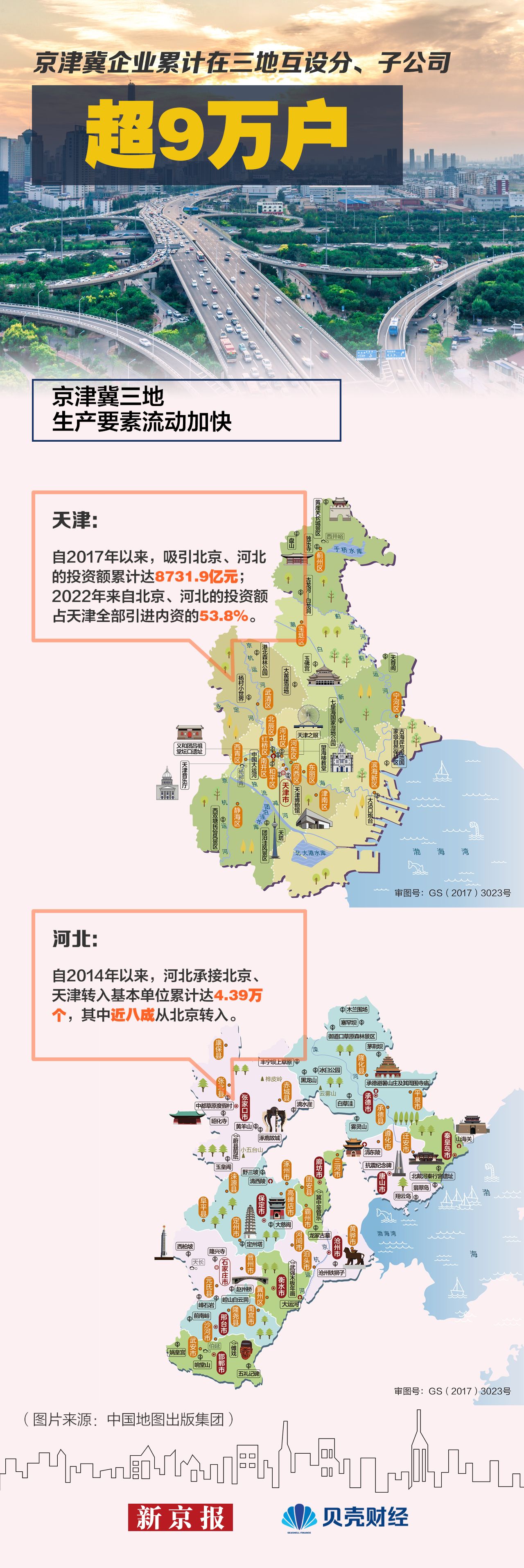随着京津冀协同发展战略不断推进,三地之间联系亦不断加深。目前,京津冀三地企业累计在京津冀区域互设分、子公司超过9万户,三地生产要素流动加快。