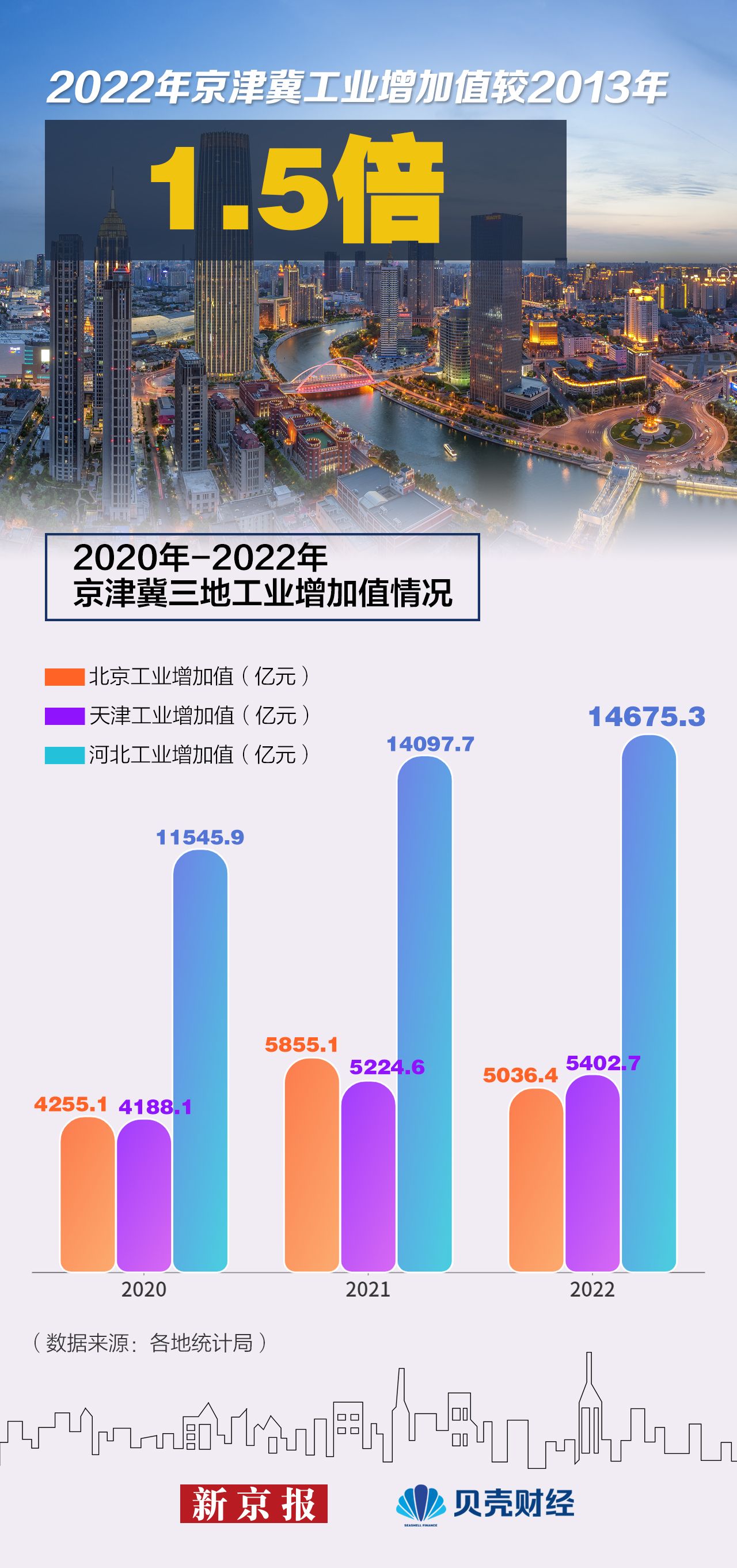 2022年,京津冀地区工业增加值实现25114.4亿元,是2013年的1.5倍,年均增长4.5%;累计培育国家级专精特新“小巨人”企业1100多家,专精特新中小企业7000多家。今年5月,《京津冀产业协同发展实施方案》发布,京津冀产业分工定位更加清晰,产业链、创新链深度融合,综合实力迈上新台阶。